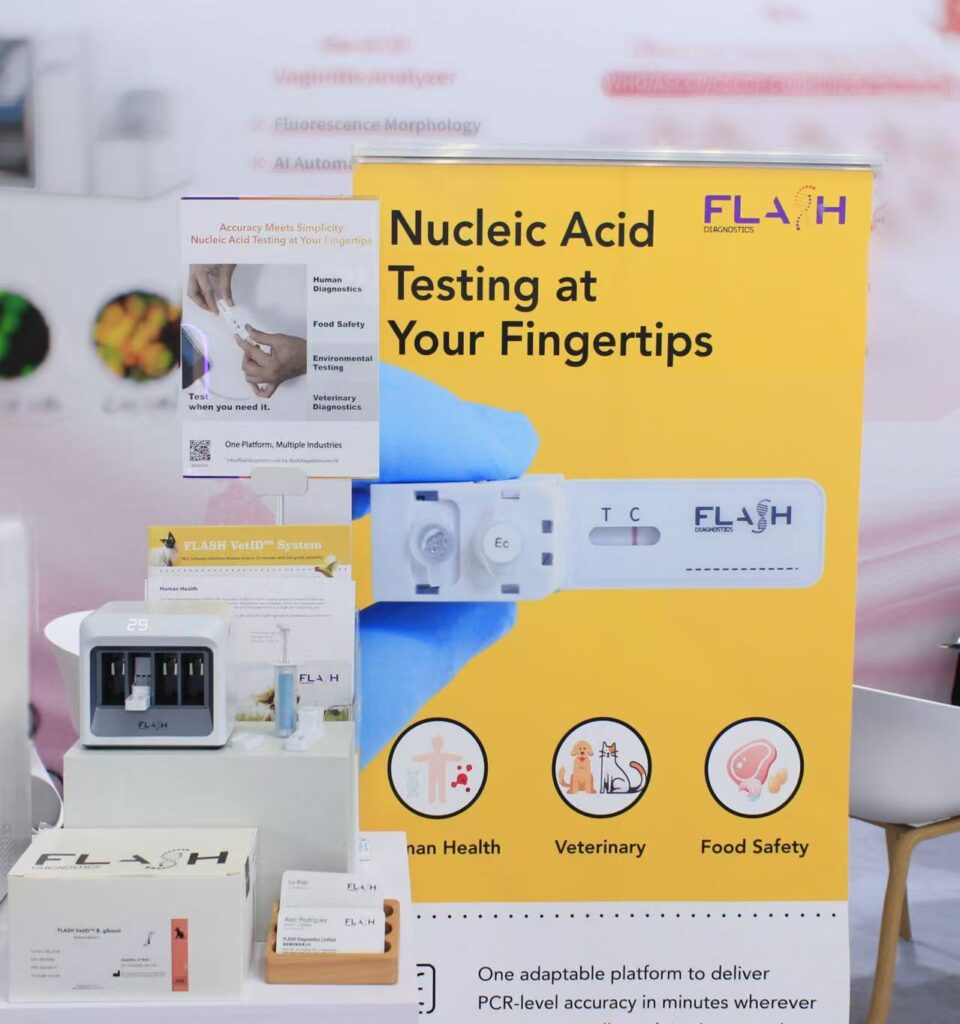 Located in Hall 1, we showcased how FLASH brings nucleic acid testing to your fingertips, enabling rapid, accurate molecular diagnostics without the complexity of traditional PCR workflows. Visitors were able to experience firsthand our portable testing system designed for veterinary, human, and environmental applications.