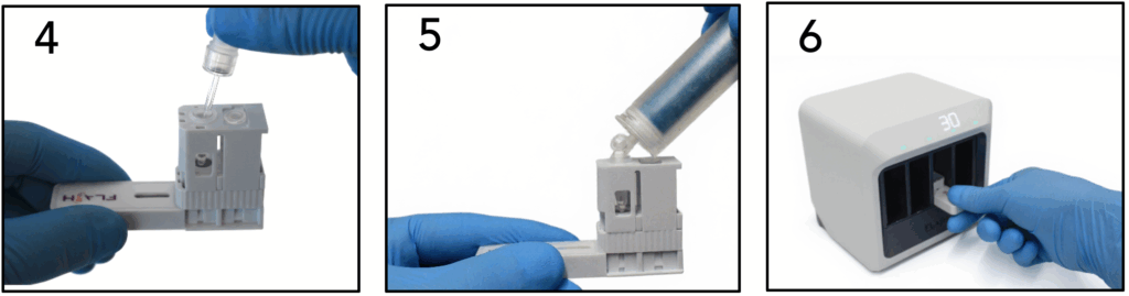 2. Transfer sample into the test cartridge and run it on the FLASH BaseTM
